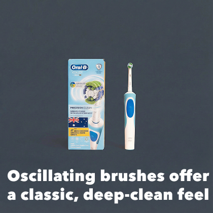 If you like the feeling of a thorough clean, oscillating toothbrushes are a solid choice. These brushes feature small, round heads that rotate back and forth to clean each tooth. Many also add gentle pulsations, which help lift plaque from between teeth and along the gumline. They’re great for instant, visible results and that “just-been-to-the-dentist” feeling after every brush.