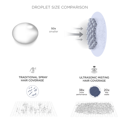 Ultrasonic Diffusion allows each applicator device to deliver particles 50x smaller than a traditional spray product which means you’ll get better coverage, better absorption and a better end result. To help better understand this concept, you might try and remember a time you’ve applied a product on your skin and hair and it has felt quite heavy and sat on top of your skin or hair follicle without properly getting absorbed. It’s an inefficient way to use your products and can also cause your pores to clog as a result. This is the issue Réduit are rectifying with Ultrasonic Diffusion.