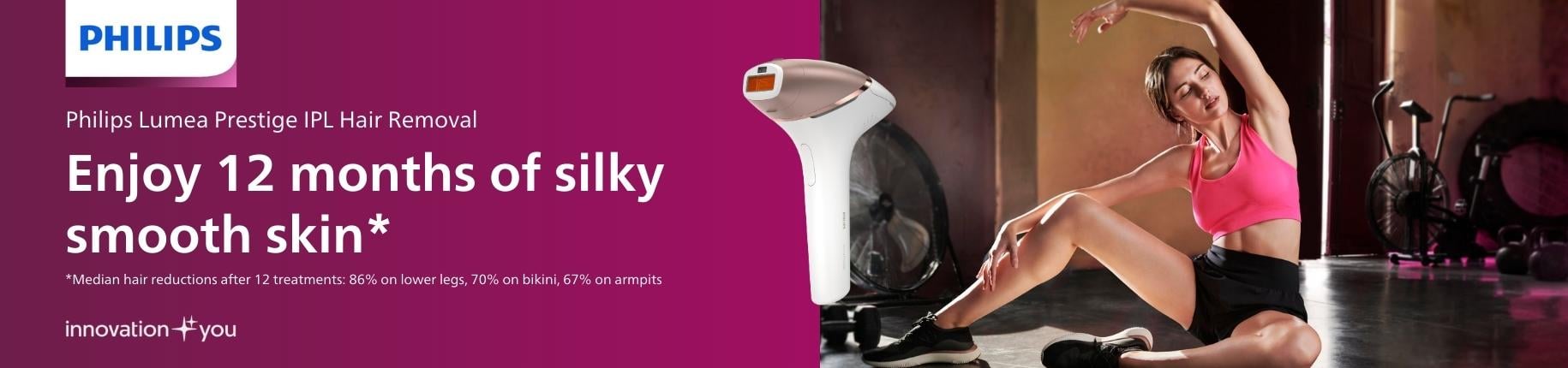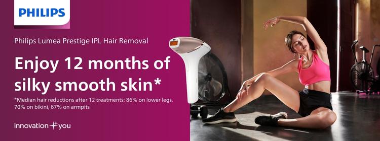 Philips also offers IPL hair removal devices for at-home use. These use Intense Pulsed Light to reduce hair regrowth over time. According to Philips, users experienced up to 86% hair reduction on the lower legs after 12 treatments.*