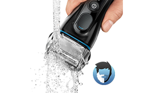 A shaver designed to shave dry or with water, foam, gel and in the shower for a refreshing and smooth skin experience. 100% waterproof up to 5m.