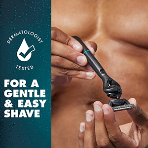 With five blades, you get a closer finish in fewer strokes, so your skin feels more comfortable after you rinse off. The FlexBall handle helps the razor pivot as you go, which makes those hard-to-reach spots feel less awkward.