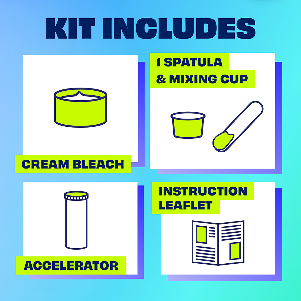 Cream Bleach: Water, Cetyl Alcohol, Glyceryl Stearate, Hydrogen Peroxide, Mineral Oil, Petrolatum, Propylene Glycol, PEG-100 Stearate, Pentaerythrityl Tetracaprylate/Tetracaprate, Polydimethylsiloxane, Fragrance, Tocopheryl Acetate (Vitamin E Acetate), Phosphoric Acid, DL-Alpha-Tocopherol Acetate, 2,6-Di-tert-butyl-4-methylphenol.