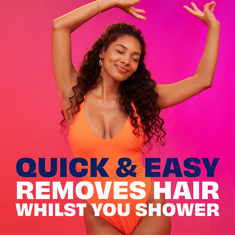 Nair Legs & Body Shower Power Max Hair Removal Cream slips into your shower routine and lifts the hassle out of hair removal. Apply on dry skin, hop in the shower, then wipe away. The formula breaks down hair below the surface, so skin feels smoother after you rinse - and you’re not left dealing with nicks, cuts, or that scratchy shave regrowth.
