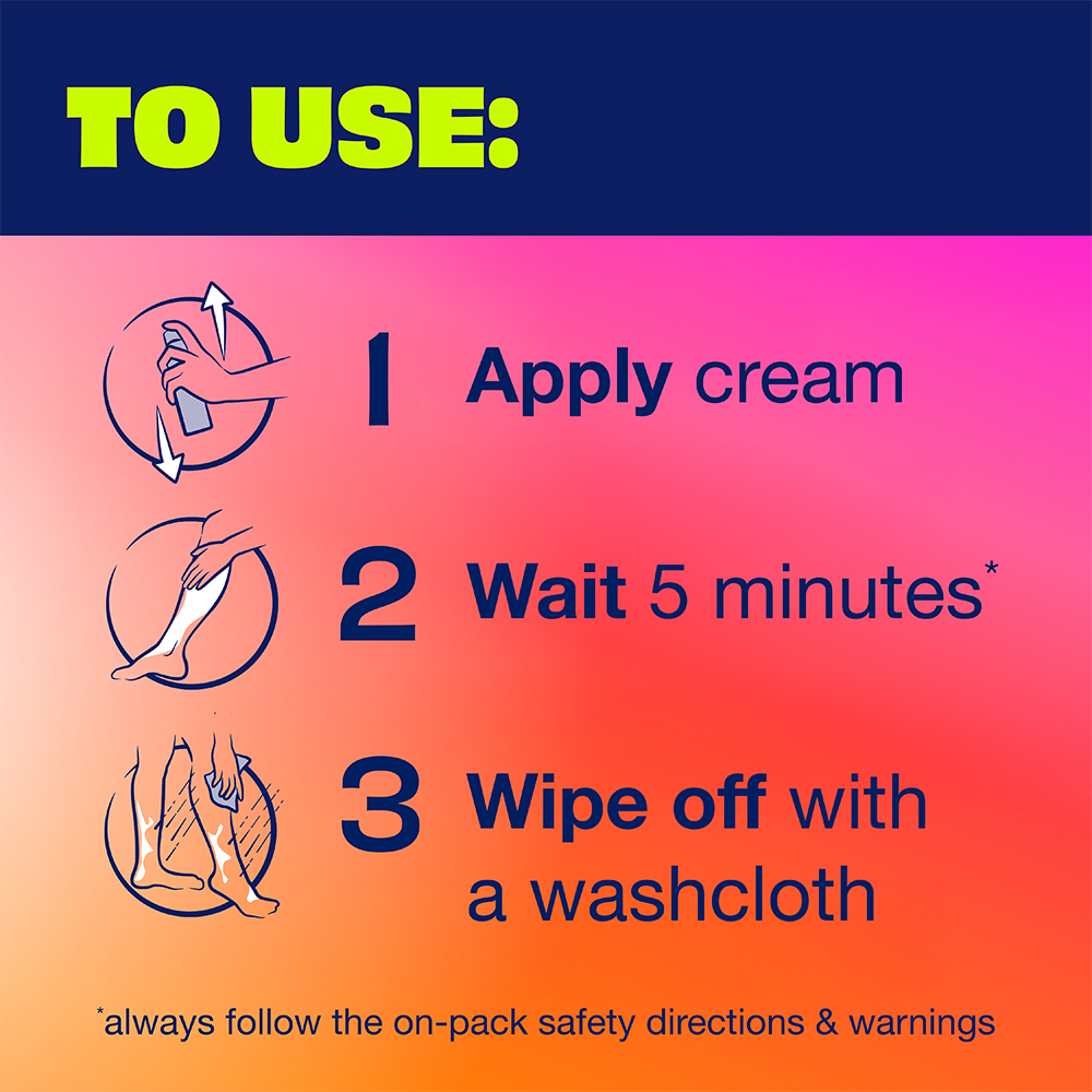 - Wait 5 minutes, then test a small area. If hair doesn’t wipe away easily, leave a few minutes longer - don’t exceed 10 minutes total.