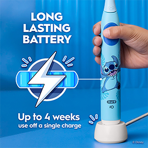 One charge lasts up to four weeks based on brushing twice a day for two minutes.