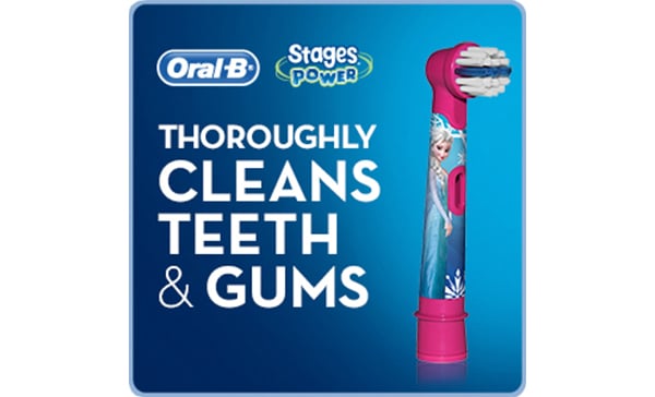 The Oral-B Stages Power replacement electric toothbrush heads are specially made for kids. The extra-soft bristles are gentle on tender gums, and smaller bristles provide extra-soft brushing while longer centre bristles are ideal for cleaning chewing surfaces.