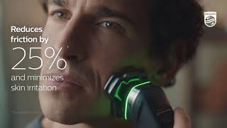A protective coating lies between the shaver heads and your skin. Made of up to 2.000 micro-spheres coat every square millimetre. Minimise irritation by reducing 25% of friction on skin***.