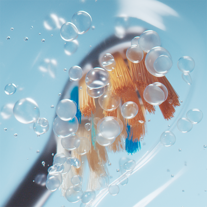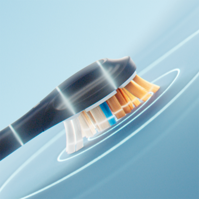 The extra-long side bristles extend far enough to sit against the gumline while the rest of the head works across the tooth surface. Gums stay part of the clean throughout every session, not just when you remember to angle the brush down.