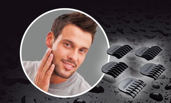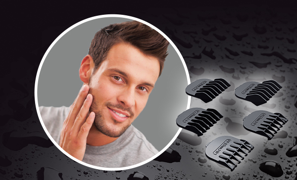 1.5, 3, 6, 9, 12mm lengths to maintain a perfect beard or 3-day stubble.