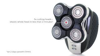5x cutting heads shave your whole head under two minutes* on a 2 day hair growth. The flexing heads fit the shape of your skull perfectly.