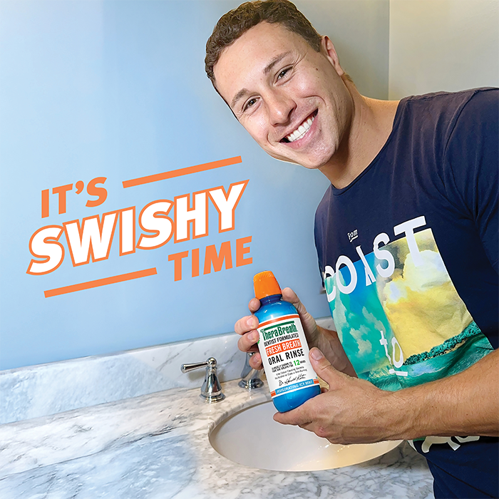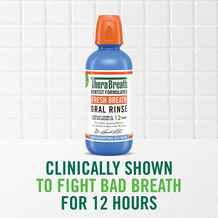 - Swish and gargle for 90 seconds - make sure it reaches the back of the throat, which is where most odour-causing bacteria live