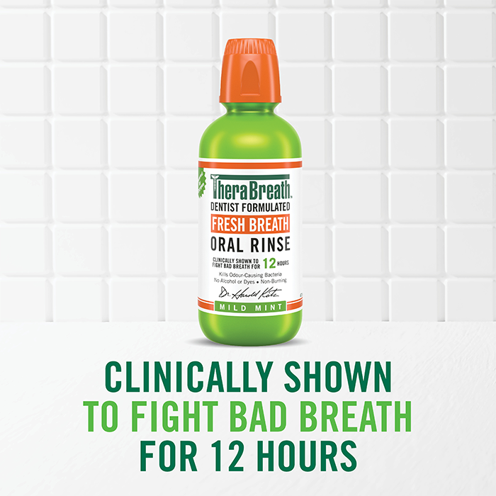 - 473mL TheraBreath Oral Rinse Mild Mint