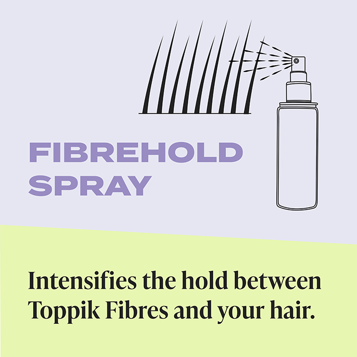 Toppik FiberHold Spray is the finishing step that helps your Hair Building Fibres stay where you applied them. A light mist strengthens the bond between fibres and fine or thinning hair, so coverage stays looking even and reliable throughout the day - including in wind, rain and perspiration.